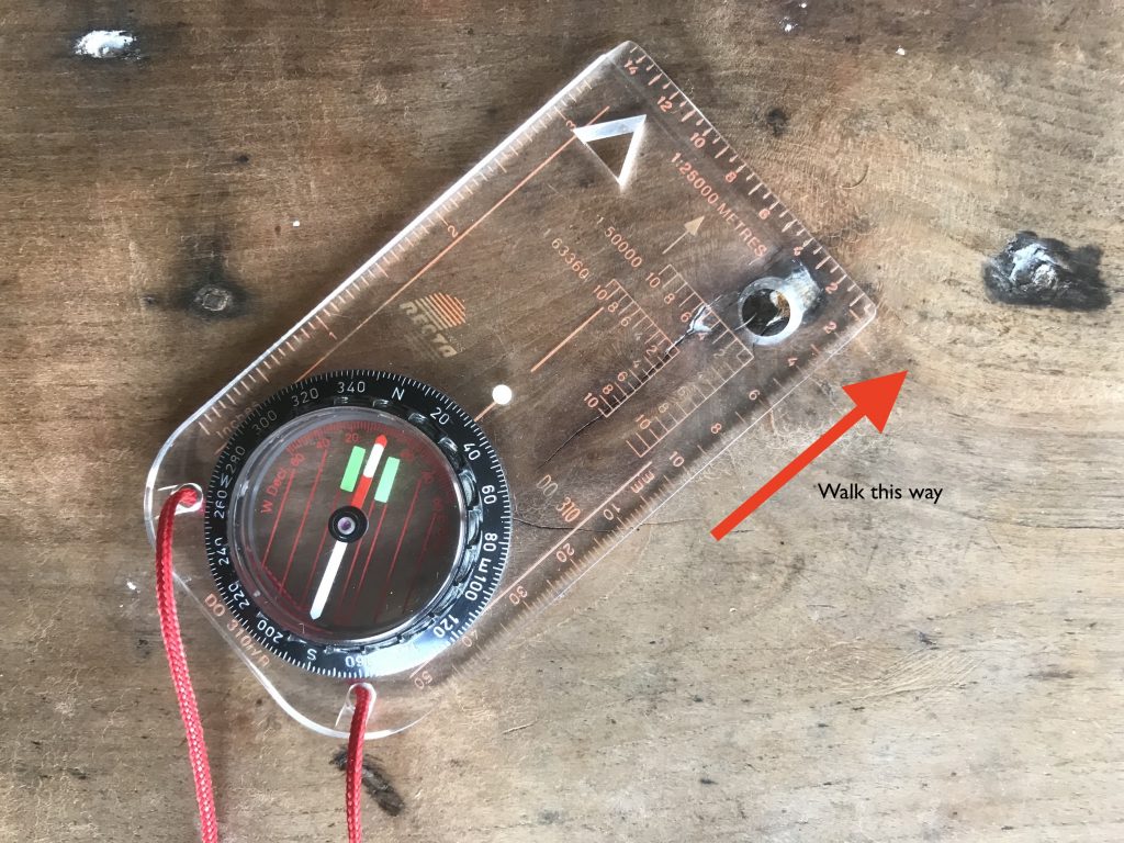 We can see here that it it roughly north east, but this isn’t good enough, so there are a few simple steps to taking a bearing.
